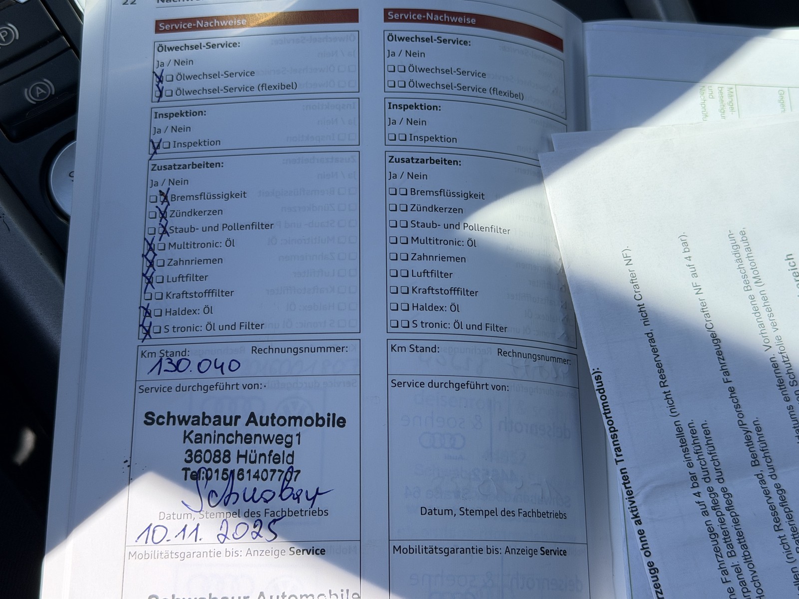 * Inspektion / Getirebe ÖL / Haldex Öl wurden am 10.11.2025 bei 130.040 erneuert